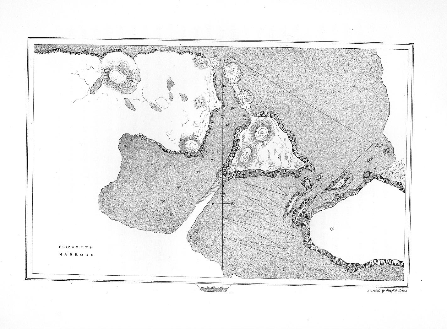 - Chart of Elizabeth Harbour, image 13 x 21 cm, US$30