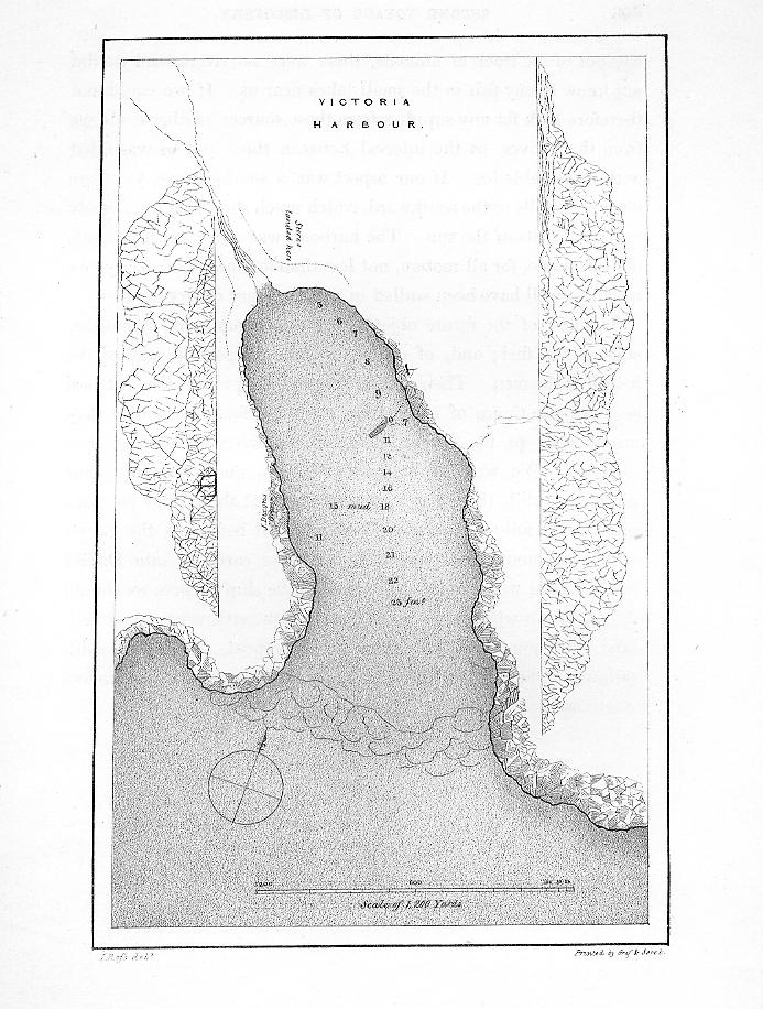 - Chart of Victoria Harbour, showing where stores unloaded, depth