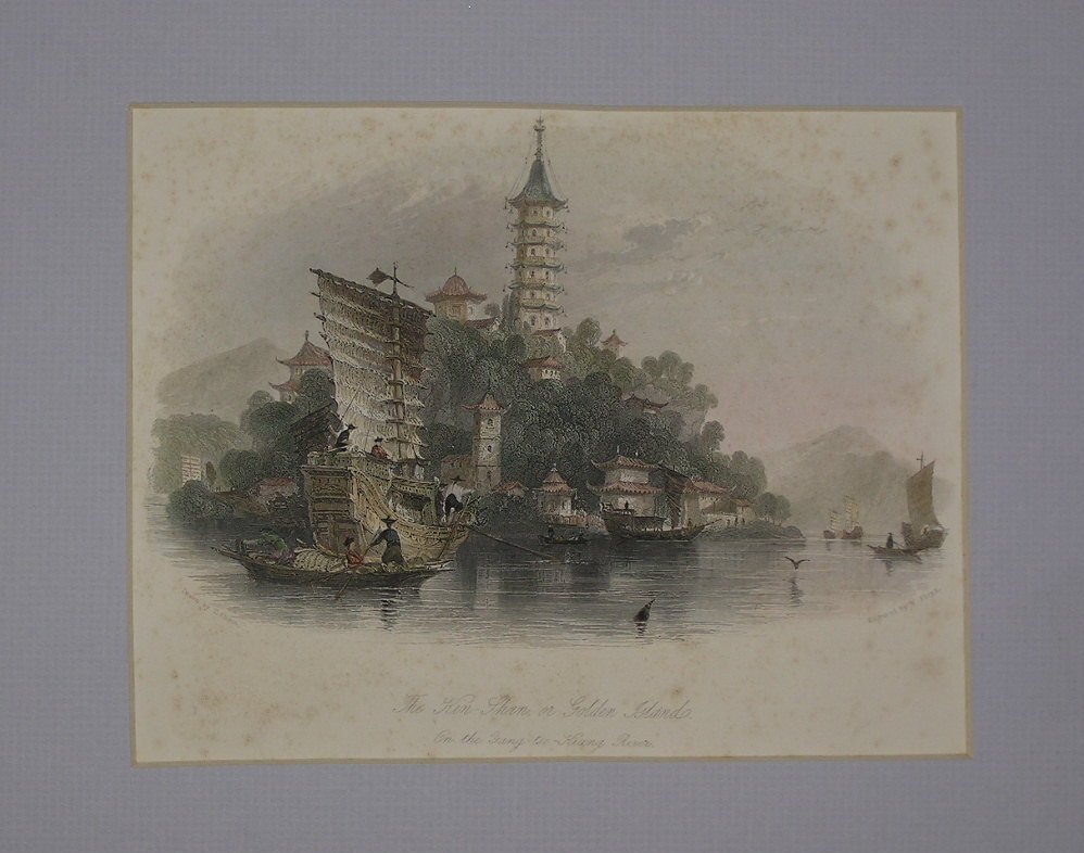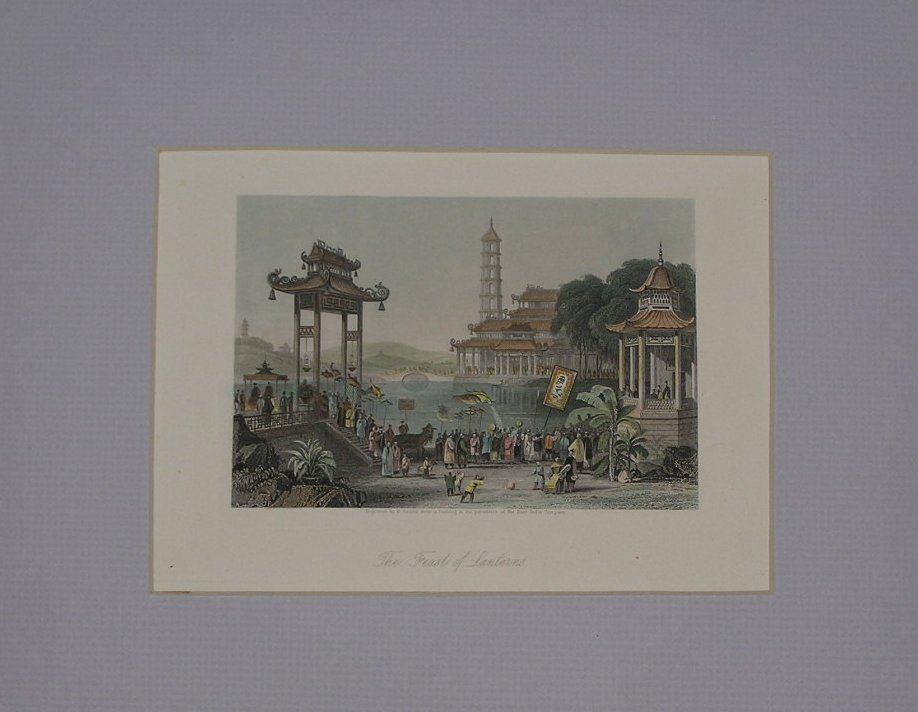 colored engraved print, image 4 x 5.5 inches on larger sheet, mounted