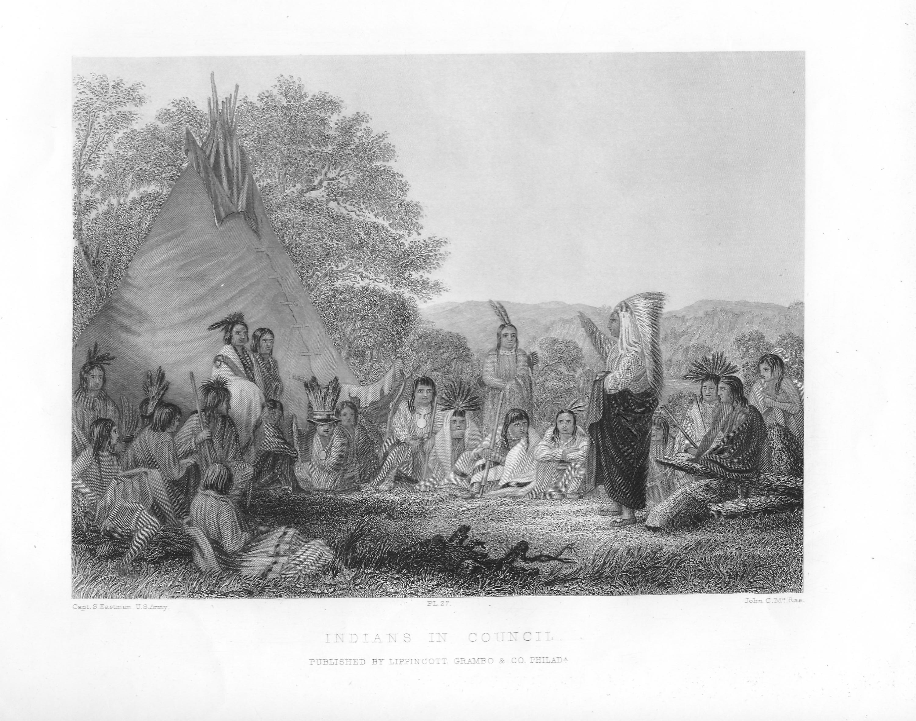 - Indians in Council, image15 x 20 cm [6 x 8 inches] on sheet 24 x 32