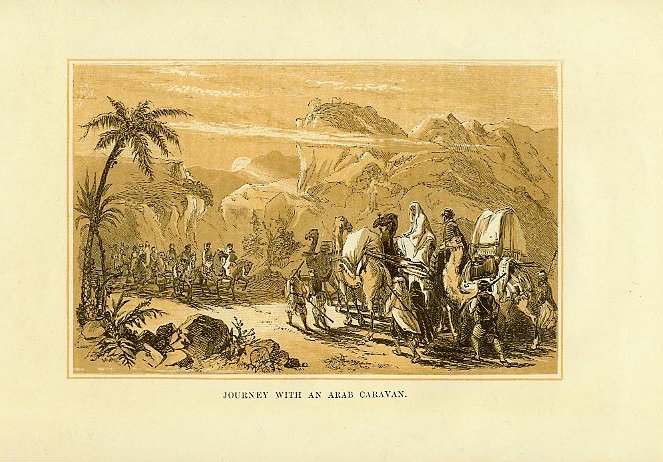 - Journey with an Arab Caravan, 19th century tinted lithograph, image