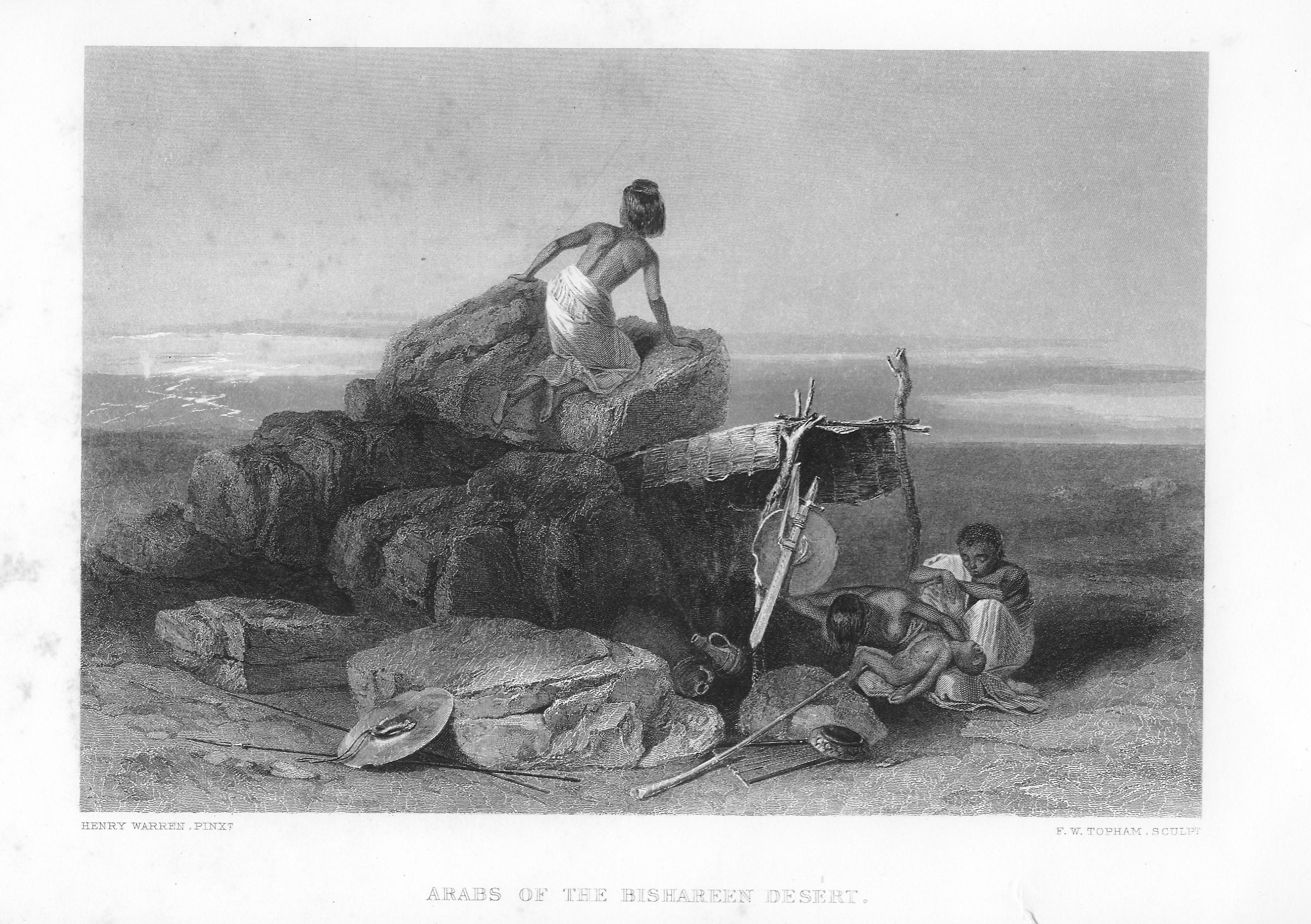 - Arabs of the Bishareen Desert, engraved plate drawn by Henry Warren,