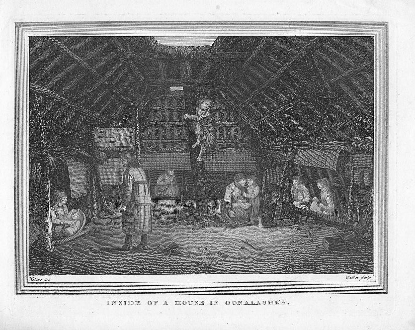 - Inside of a House in Oonalashka, drawn by Webber, c.1850, engraved
